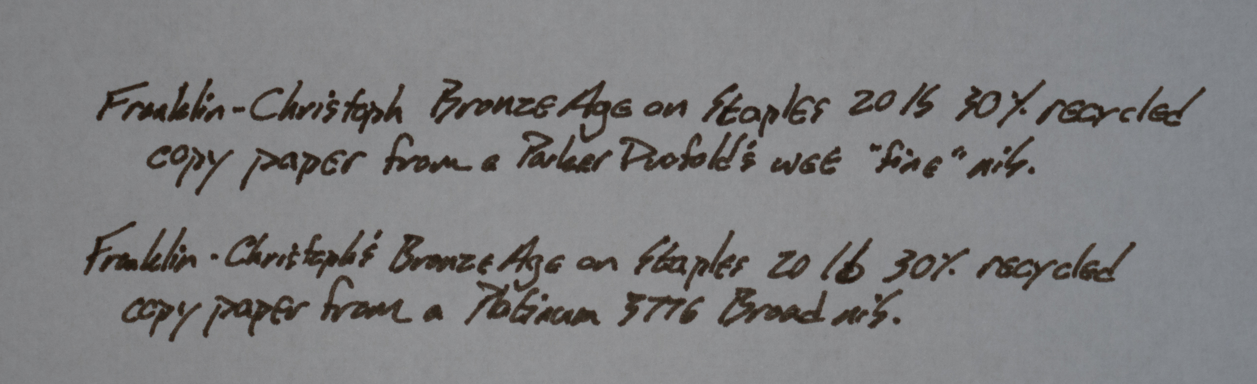 Both of these nibs are on the wider side (even though one is marked "fine"), and so the performance on this bottom-tier paper is pretty average, I'd say.