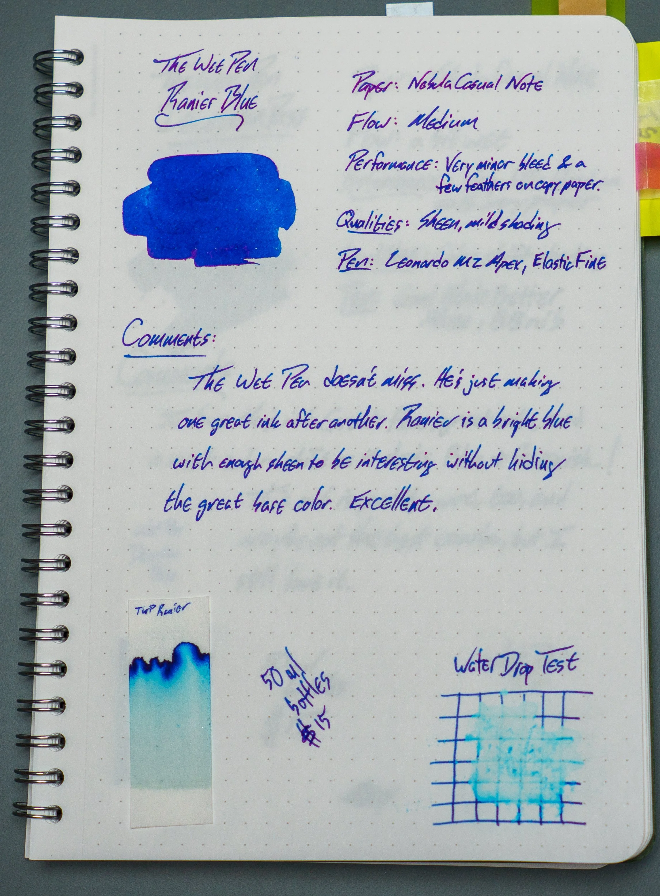 Rainier Blue isn’t water resistant, so don’t look for that in this ink.