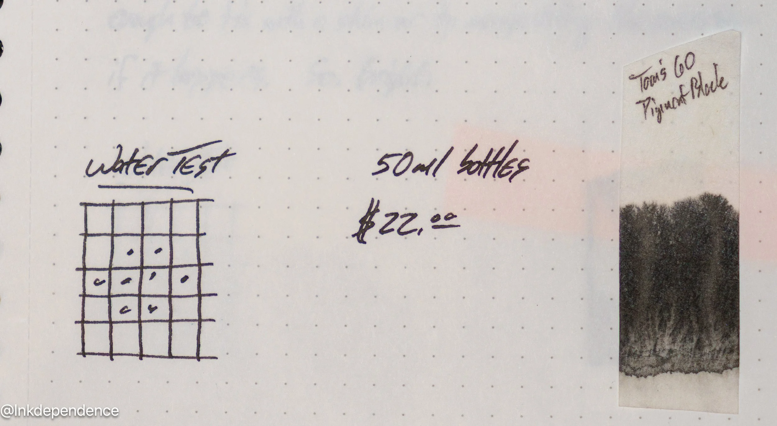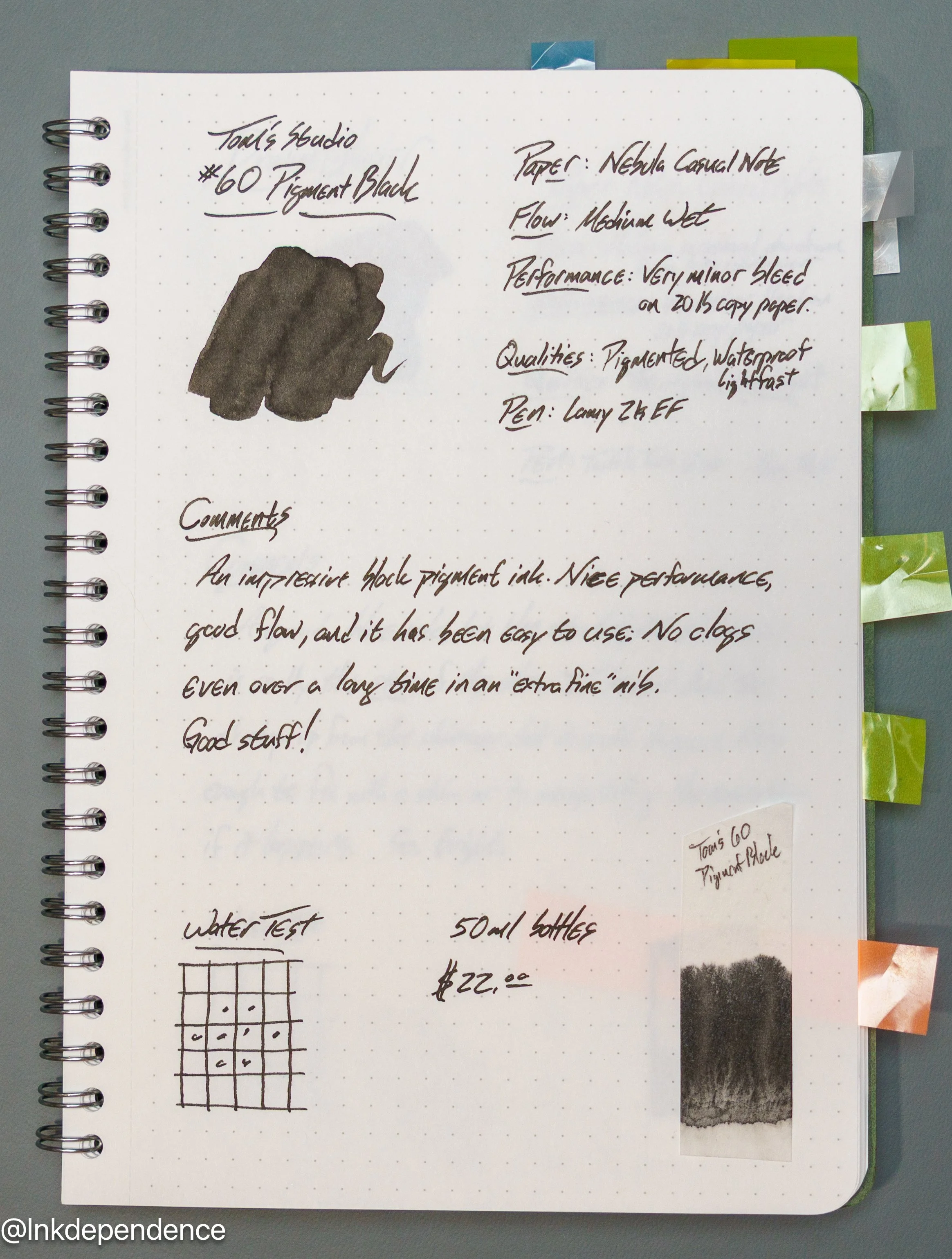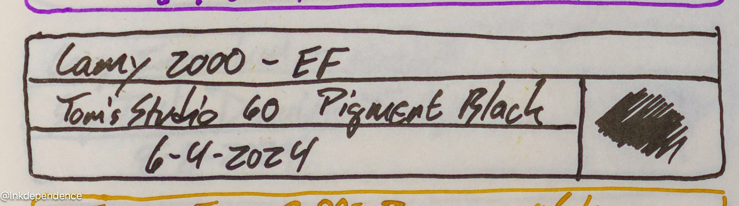 Tom’s Studio Pigment Black has that shine that you get with pigmented inks so it’s not the very darkest black when you shine a light on it. That’s something I like in a black ink, as it makes it a little more interesting. It’s also got a nice flow, and it didn’t even clog this Lamy 2000 EF nib when I left it in a drawer for a long while. And the waterproofing is great. These pictures were taken after my water test in the YouTube video, and it doesn’t look like anything has moved at all.
